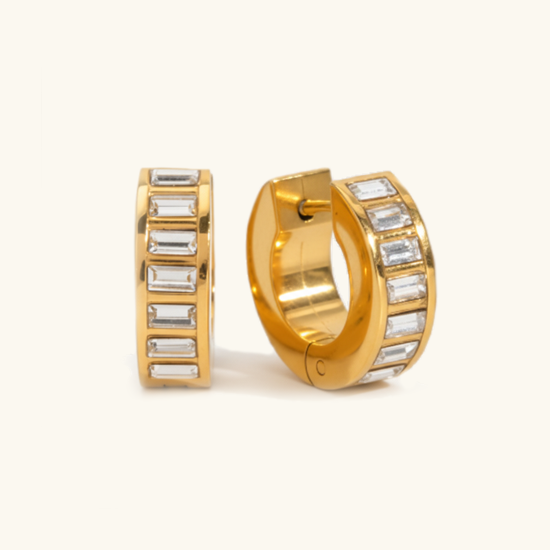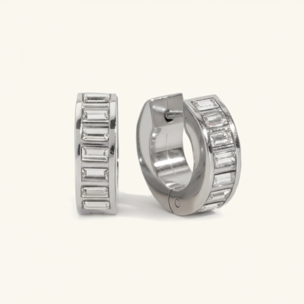 Avaria's Lexie combines modern geometry with classic luxury. The channel-set baguette stones provide a clean, continuous shimmer that catches the light beautifully. As per Avaria's standards, it remains waterproof, skin-friendly, and hypoallergenic.
