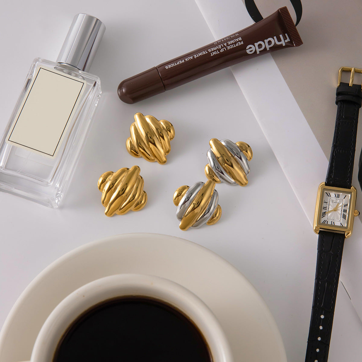 Avaria's Maxine speaks in texture. Its rippled curves bring dimension and character, transforming a simple stud into something with presence. Bold yet refined, these earrings are for the days when you want your jewelry to do more than accessorize — you want it to lead.